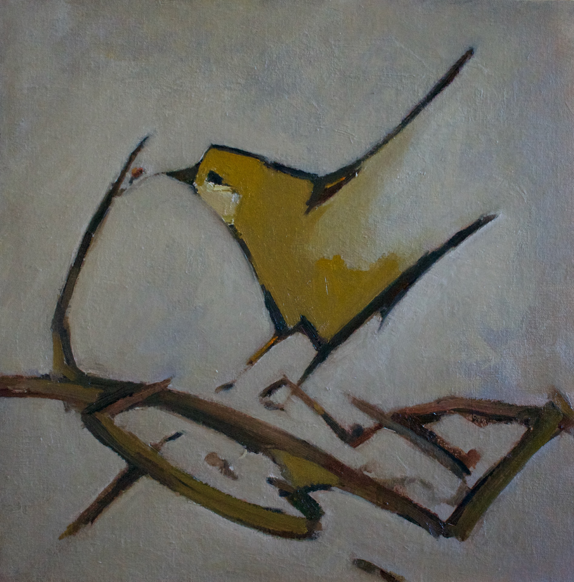 Een dappere kleine vogel, druk bezig met het bouwen van een ingewikkeld nest, takje voor takje